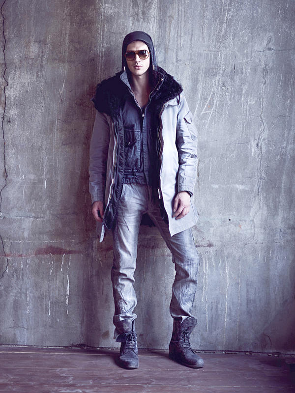 «Эти вещи выглядят слегка убитыми, в них видна история», — говорит Игорь о своей коллекции». Это про «гранж». «Но при этом они абсолютно новые. Эффект достигается с помощью сложных технологий — окрашивания, энзимирования, стирки «в камнях». А это уже про Hi-End.