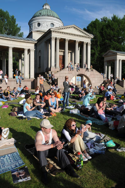 VIII Международный фестиваль «Усадьба. Джаз»крупнейший в России джазовый open-air проект фотогалерея (фотограф Дмитрий Егоров) Эскизы Алевтины Стручковой Автором идеи фестиваля, а также продюсером и главой оргкомитета является Мария Сёмушкина, директор агентства «АртМания». На сегодняшний день фестиваль «Усадьба.Джаз» - это грандиозный open-air, задуманный и спродюсированный в соответствии с высокими международными стандартами проведения фестивалей. Первыми участниками фестиваля были российские музыканты, артисты из стран Ближнего Зарубежья и эмигранты. В 2007 на фестиваль впервые приехали всемирно-известные музыканты, и фестиваль получил статус международного события. За годы проведения, на пяти сценах «Усадьбы.Джаз» выступило более 200 различных коллективов из России, Украины, Белоруссии, Германии, США, Франции, Италии, Италии, Израиля, Армении, Грузии и др. Фестиваль проходит в одной из красивейших подмосковных усадеб Архангельское. Архитектурные ансамбли, утопающие в зелени – лучшие декорации для проведения летнего уик-энда. По сложившейся традиции «Усадьба.Джаз» всегда проходит в первые выходные лета. Два дня прекрасной музыки, сочных красок, счастливых улыбок и хорошего настроения. В этом году программа фестиваля обещает немало ярких имен, как российских, так и зарубежных. На «Усадьбе.Джаз» выступят непревзойденный гитарист John Scofield, знаменитый американский блюзмен Lucky Peterson, вокальное трио из Великобритании, исполняющее джаз, свинг и блюз, стилизованные под 40-е годы - Puppini Sisters. А также: Нино Катамадзе и группа Insight, Billy’s Band, группа «Браво», Биг-Бэнд Игоря Бутмана, и многие другие. В 2011 году «Усадьба.Джаз» не изменит традициям. На протяжении двух дней с пяти фестивальных сцен будет звучать музыка разных стилей и направлений, от хулиганского фанка до классического джаза. Рядом с площадкой Партер вновь появится детский городок, арт-маркет, игровые зоны, мастерские, чайные и еще много всего интересного и неожиданного. В этом году фестиваль расширяет свои границы и впервые состоится в Санкт-Петербурге, 2 и 3 июля, Елагин остров! Ждем вас на фестивале! Сайт фестиваля www.usadba-jazz.ru 4 июня Площадка "Аристократ" Ведущий - Кирилл Мошков