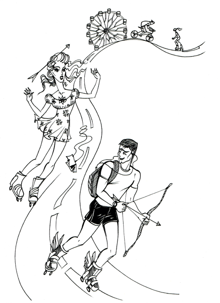 «Он и Она – волшебная нить любви» посвящена Великой теме Любви! В графических работах автора отражены разные настроения любви – случайно-неслучайная встреча «двух одиночеств», беззаботная влюбленность, взаимная радость обладания и неизбежная грусть расставания, сладостно-тягостные воспоминания по утраченному счастью, рождение новой волшебной «love story» и счастливый союз двух сердец. Вдохновением послужили строки стихов из книг Анатолия Коцониса и стихи Алевтины Стручковой, лауреата Московского Фестиваля «Лучший город земли».