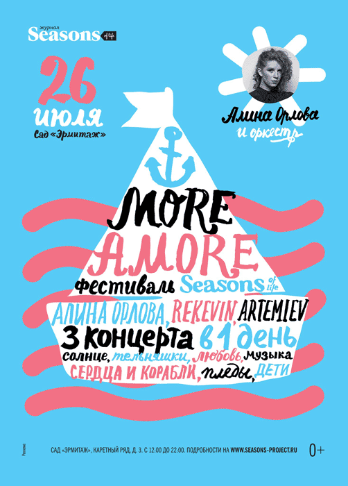 журнала Seasons of life 26 июля в Саду «Эрмитаж» журнал Seasons of life проводит ежегодный летний фестиваль More Amore («Море Любви»). Это самый лёгкий, красивый и музыкальный фестиваль Seasons