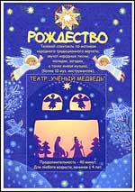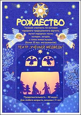 Дорогие единомышленники Арт-ассоциации «АРТ’ЭРИА» и друзья Клуба «АРТ’ЭРИА»!!! В сочельник Старого Нового года хочу послать вам самые сердечные приветы! Сохранить в сердце детское ощущение СКАЗКИ, ЧУДА и ВОЛШЕБСТВА этих дней! Мы наконец-то собрались опять в самом сердце Москвы и готовы ко встрече с вами Нового 2009 года! Завтра, 14 января – первое событие в этом году – наши дорогие гости театр теней «УЧЕНЫЙ МЕДВЕДЬ» и их потрясающий, проникновенный и таинственный, легкий для души, так как очень веселый и радостный, непринужденный и домашний, рукотворно-шедевральный!!! спектакль – «РОЖДЕСТВО». Те, кто его еще не видели и не показали своим деткам – потеряли очень много. Те, кто видели, как мы – ждут с нетерпением! Афиша говорит сама за себя: Для детей от 4 лет и до бесконечности… Начало в 19-30. Билеты продаются перед спектаклем – 200 рублей и взрослым, и детям. 8-903-548-69-35 Места, правда, у нас маловато… Ну да -- в тесноте, да не в обиде! 15 января в 19.00, Малый зал ЦДРИ «Е.Б.Ж.» (Если Буду Жив). Магритт. «Каникулы Гегеля».