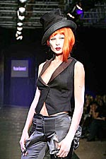 Но Кабирия все же ранима, хоть и страстно непокорна. А кабаре манит и бант пьеретты опять покрыт слезами. Нежная и роковая, она окутана черным, белым и беж. Брызги краски – попытка бунтовать, орнаментирует поверхности тканей. Фактура столь же непостоянна и порывиста, как и проявления чувств. Огненно-рыжая Полетт, любительница ветра, клоунесса с трагической складкой носит розу на плече и немного твида. Цирковое закулисье прячет дерзкие силуэты, ломаные линии и надежды, графику и случайные объемы. Обсыпано пудрой меховое бюстье, но черный преобладает, а лампочки гримерок Кафешентана так влекут