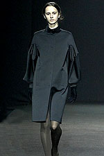 Кирилл Гасилин – архитектор формы. Он создал осенне-зимнюю коллекцию четко выверенных объемов, «вкусных силуэтов», геометрических фигур. Мягкие кашемировые драпированные пальто и элегантные костюмы. Платье-ананас, юбка-бутон, старинные муслиновые блузки с объемными рукавами...