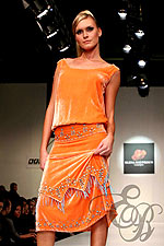 Муза-путешественница посреди зимы раздевается в воображении российских дизайнеров до нежных воздушных платьев. Распускаются цветки юбок, греет плечи солнце. Раскрепощается классика и даже черный раскрашен акцентами блеска и цвета, чья доминанта в этот жаркий летний сезон 2008 неоспорима.